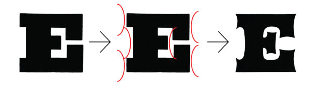 When derived from Roman they show a distinct contrast in stroke weight with clearly serifed terminals; derived from Antique they are characterized by bold-faced slab serif forms showing minimal contrast in stroke weight; and, when derived from Gothic the terminals are serif-less, though mannered, and the strokes can vary from low to high contrast. The outer shape of the plain-faced style is manipulated to produce an active contour. The extreme to which the contour of the letterform is manipulated can make it difficult to clearly determine from which primary style it was derived, as reducing from or adding to the original form can often produce similar visual results. This indeterminacy can easily blur traditional classification taxonomies.